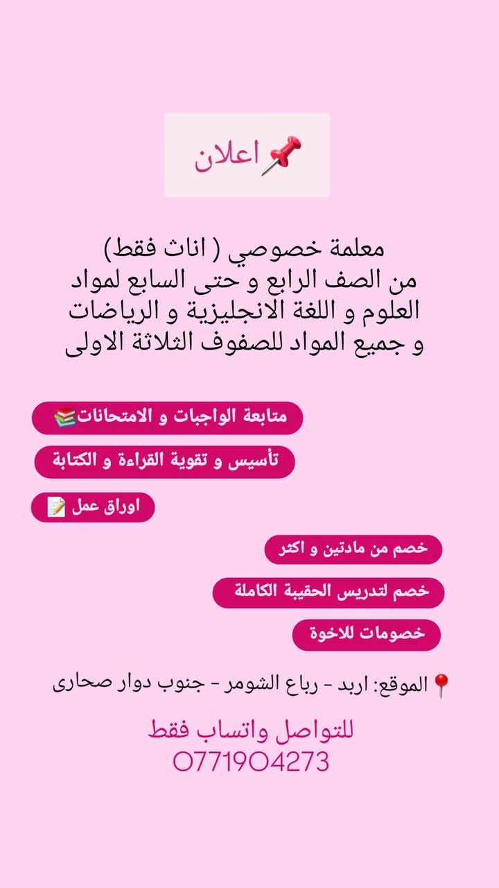 إعلان توظيف – في مرج الحمام عن حاجتها إلى:✨ معلمة تربية إسلامية – قسم الإناثالشروط: • لا يُشترط توفر الخبرة السابقة. • أن ...