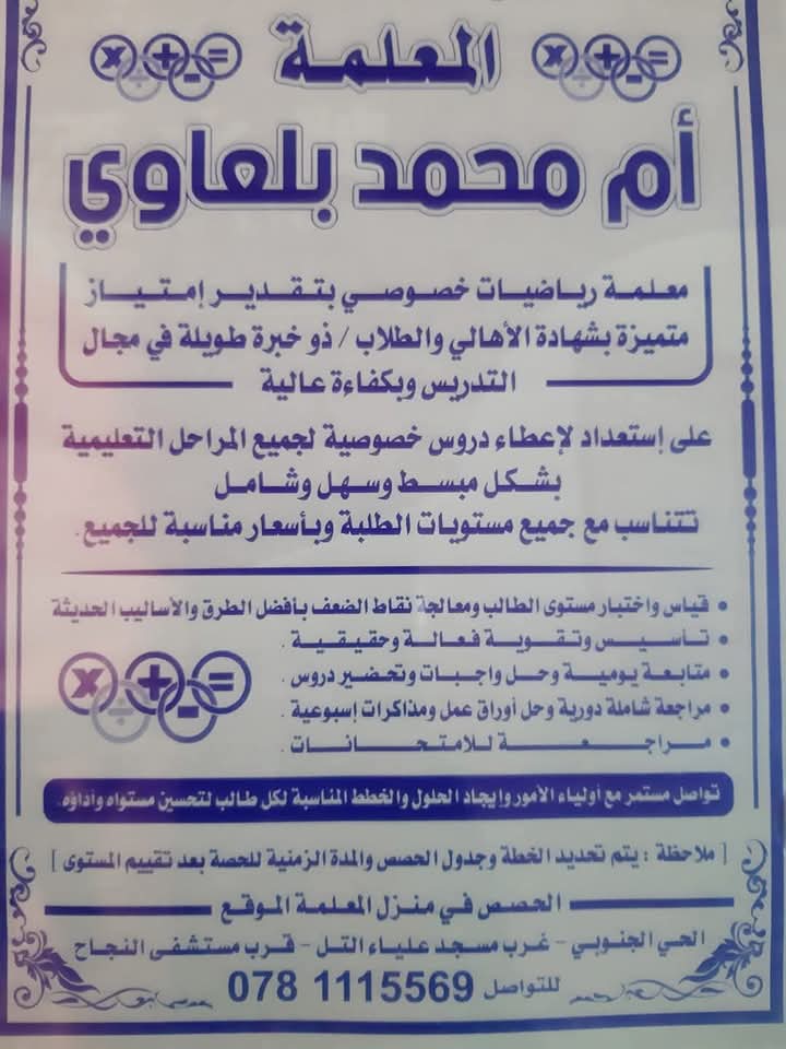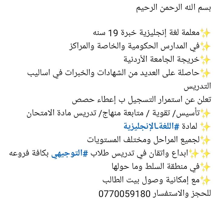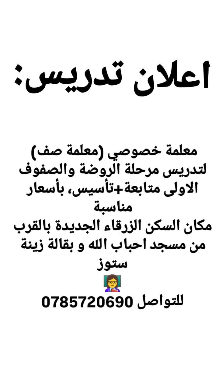 مطلوب لمدرسة خاصة بالزرقاء معلمة صف ثالث ويشترط الخبرة في المدارس الخاصة .يرجى التقديم عن طريق منصة EduJordan